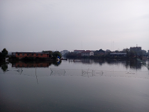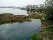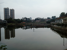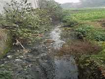 水体呈现黑色,水面上漂浮很多垃圾,下水道直排到水塘,而且有散发很严重的臭味