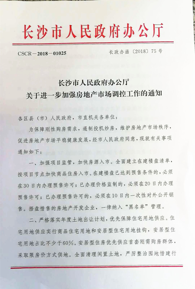 市住建委相关负责人介绍,《通知》的出台是长沙坚决落实中央“以人民为中心”和“房住不炒”精神,严格按照省委省政府和市委市政府的部署要求,对房地产市场进一步加强调控,有效增加住房供给,保障土地供应,切实满足不同层次住房需求。体现长沙调控决心不动摇、力度不放松。
