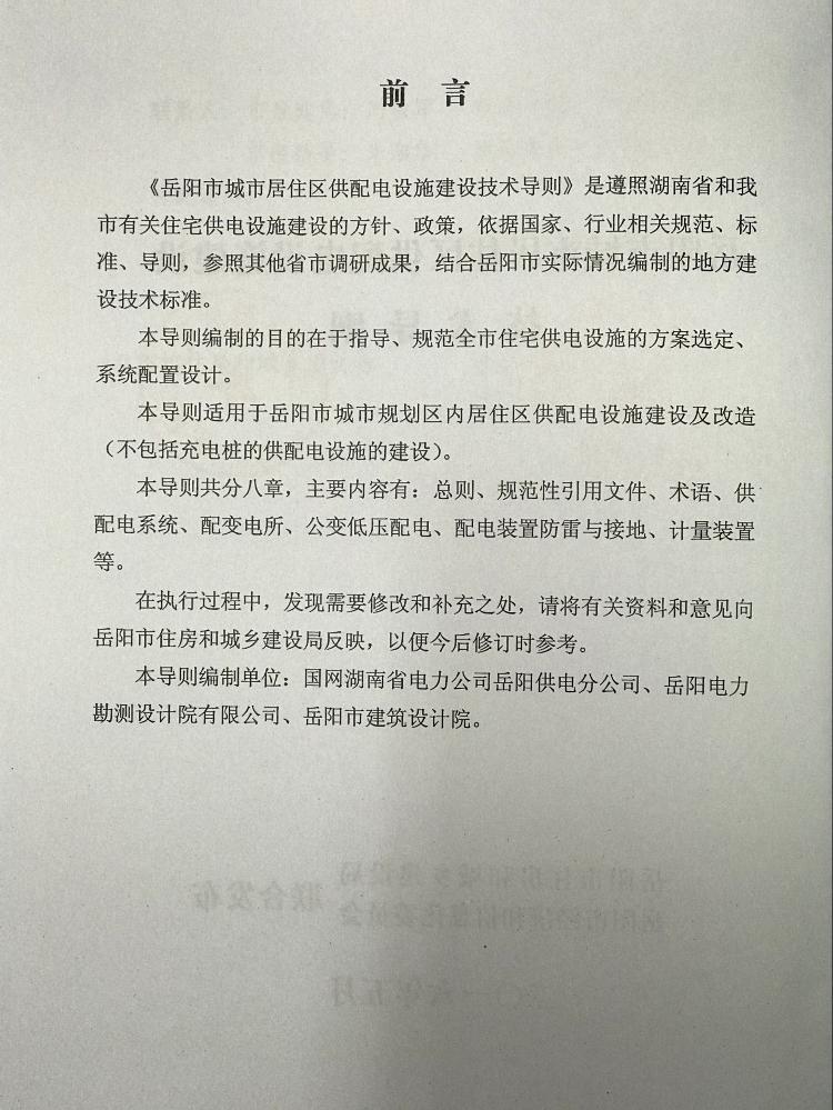 关于印发《岳阳市城市居住区供配电设施建设技术导则》的通知